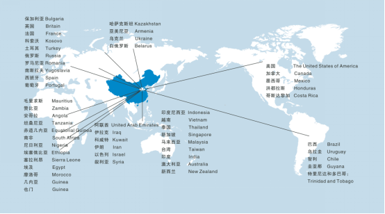 我司設(shè)備已銷(xiāo)售80多個(gè)國(guó)家與地區(qū),詳細(xì)請(qǐng)參見(jiàn)我們的銷(xiāo)售區(qū)域圖。
