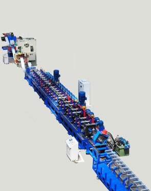 1.貨架立柱冷彎型鋼設備包括液壓開卷、校平、送料、沖孔、成型、剪切、出料。控制采用西門子PLC,貨架立柱生產線,觸摸屏輸入,自動化程度高、操作方便、生產效率高,整線生產速度可達到40m/min。