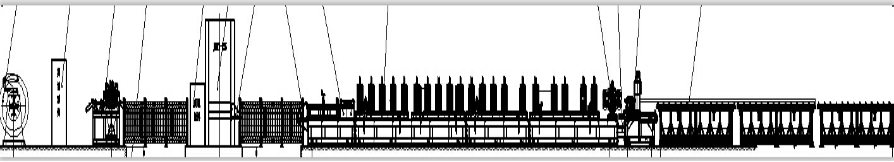 自動放料——導向——校平、送料——連續(xù)沖底孔——成型——定尺、切斷——收料臺