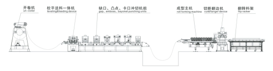 開卷—入料導(dǎo)正—較平——成型—切斷--出料